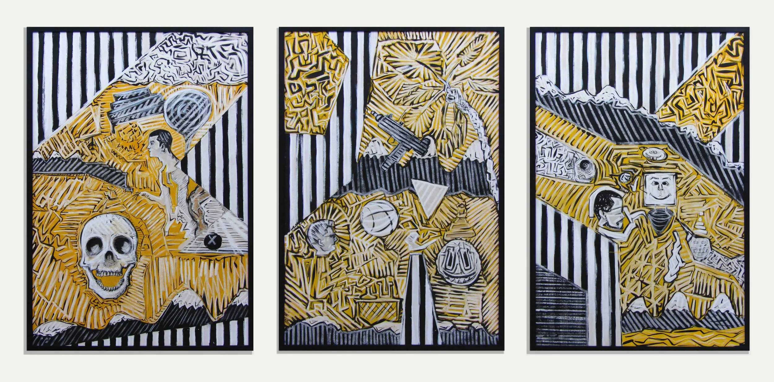 'Yellow Triptych' 122cm x 81cm (per panel), 2018. [Sold]